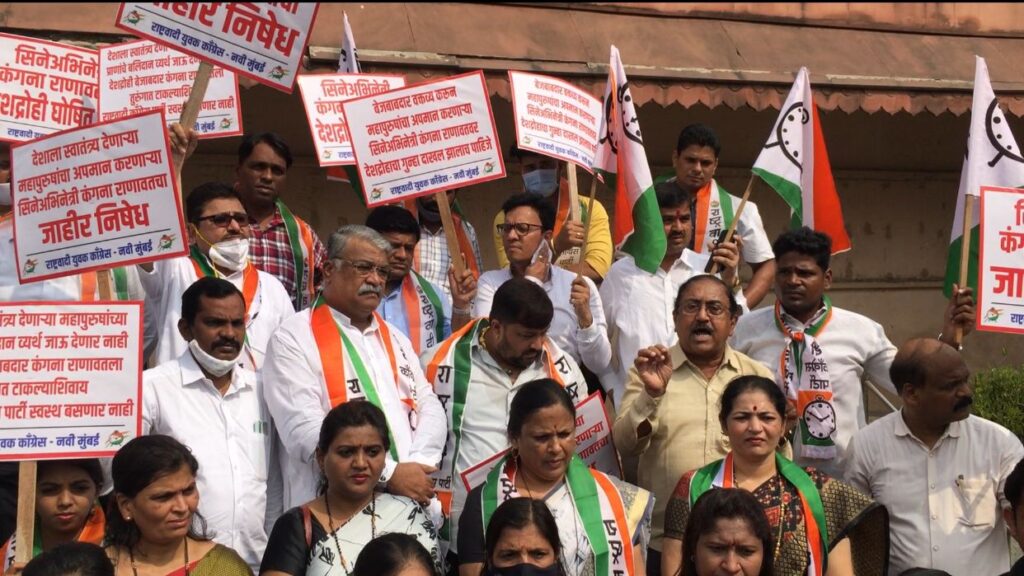 भाजपप्रणित केंद्र सरकारच्या निषेधार्थ नवी मुंबई राष्ट्रवादी रस्त्यावर -बेलगाम कंगना राणावतचा पदमश्री पुरस्कार काढून घ्या ! इतर राज्यातील निवडणुका जिंकण्यासाठी भाजप जातीयदंगली घडवतेय ! जिल्हाध्यक्ष…