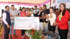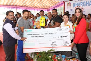 पनवेल, कोकण दर्पण वृत्तसेवा : आरोग्य आणि तंदुरुस्तीची समाजामध्ये जनजागृती व्हावी, या सामाजिक उद्देशाने यंदा ‘हम फिट तो इंडिया फिट’ ही संकल्पना घेऊन रामशेठ ठाकूर इंटरनॅशनल स्पोर्टस कॉम्प्लेक्स आणि खारघर मॅरेथॉन कमिटी यांच्या संयुक्त विद्यमाने खारघरमध्ये १३ जानेवारी झालेल्या ११ व्या मॅरेथॉन स्पर्धेत पुरुषांच्या खुल्या गटातील स्पर्धेत मुंबईच्या योगेंद्र कुमारने तर महिलांच्या खुल्या गटात पुण्याच्या जनाबाई हिरवे यांनी प्रथम क्रमांक पटकावित बाजी मारली. सुविधांची चोख सेवा, उत्कृष्ट व सुनियोजनात झालेल्या या मॅरॅथॉनमध्ये १६ हजारहून अधिक म्हणजेच अपेक्षा पेक्षा जास्त स्पर्धकांनी सहभाग घेऊन तुफान प्रतिसाद देत ही खारघर महामॅरेथॉन केली.