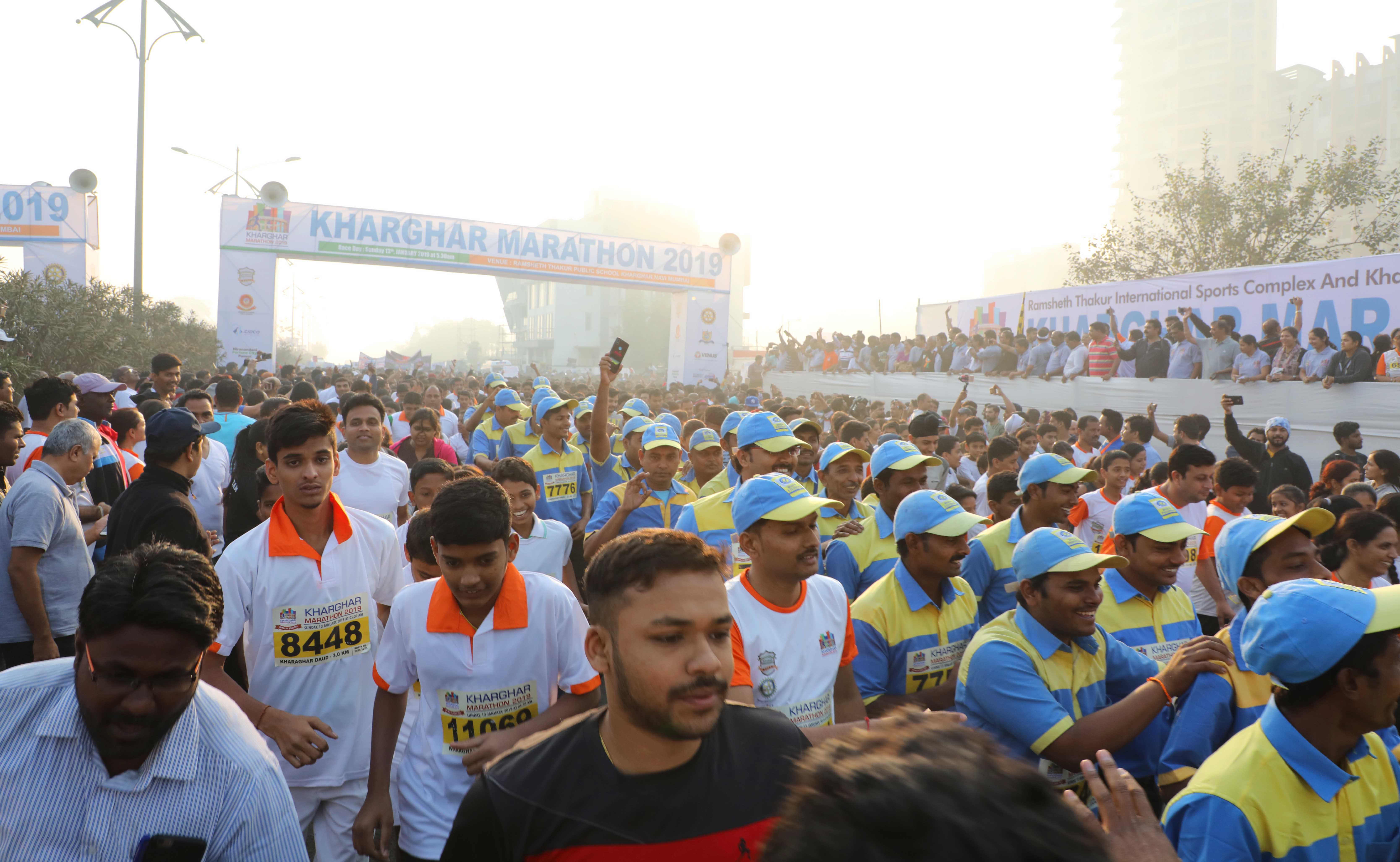 खारघर मधील सेक्टर १९ येथील रामशेठ ठाकूर पब्लिक स्कूल येथून या स्पर्धेला सकाळी ०६ वाजता मान्यवरांच्या हस्ते झेंडा दाखवून या स्पर्धेला सुरुवात झाली. लोकनेते रामशेठ ठाकूर यांच्या अध्यक्षतेखाली, सिडकोचे अध्यक्ष आमदार प्रशांत ठाकूर यांच्या प्रमुख उपस्थितीत झालेल्या या स्पर्धेला पनवेल महापालिकेचे आयुक्त गणेश देशमुख, मिस्टर युनिव्हर्स जगजेता शरीरोष्ठवपटू संग्राम चौगुले, सिने अभिनेत्री मोनालिसा बागल, एफएम आरजे अर्चना, आरजे सलील, मिसेस इंडिया अर्थ किरण राजपूत, यांची विशेष उपस्थिती तर प्रमुख मान्यवर म्हणून पनवेल महापालिकेच्या महापौर डॉ. कविता चौतमोल, माजी उपमहापौर चारुशीला घरत, पॅराडाईज ग्रुपचे मनीष भतीजा, महापालिकेचे सभागृह नेते आणि मॅरेथॉनचे प्रमुख परेश ठाकूर, भाजपचे तालुकाध्यक्ष अरुणशेठ भगत, शहर अध्यक्ष जयंत पगडे, जिल्हा उपाध्यक्ष राजेंद्र पाटील, खारघर शहर अध्यक्ष ब्रिजेश पटेल, महिला मोर्चाच्या तालुकाध्यक्षा रत्नप्रभा घरत, स्थायी समिती सभापती मनोहर म्हात्रे, महिला व बाल कल्याण सभापती लीना गरड, प्रभाग समिती अ सभापती अभिमन्यू पाटील, रायगड लोकसभा विस्तारक अविनाश कोळी, प्राचार्य डॉ. एस. टी. गडदे, प्राचार्या राज अलोनी, यांच्यासह नगरसेवक, नगरसेविका, जिल्हा परिषद सदस्य, पंचायत समिती सदस्य, पदाधिकारी जिल्हा उपाध्यक्ष रोटरी इंटरनॅशनलचे प्रांतपाल डॉ. शैलेश पालेकर आदी मान्यवर उपस्थित उपस्थित होते.