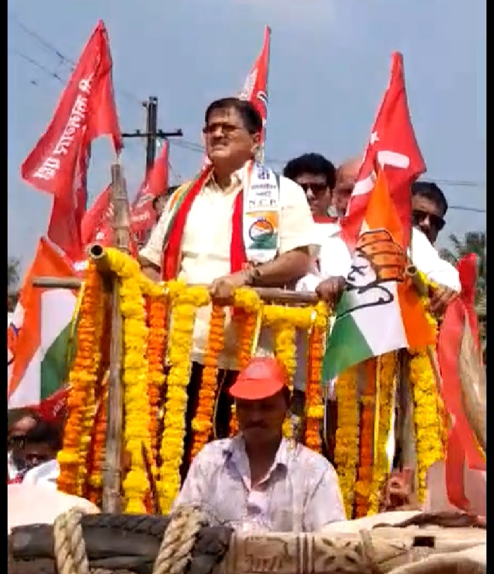 उरण कोकण दर्पण वृत्तसेवा : शेकापचे नेते तथा शेकाप आघाडीचे उमेदवार माजी आमदार विवेक पाटील यांनी आपला उमेदवारी अर्ज दाखल केला. जोरदार शक्ती प्रदर्शन करीत बैलगाडीतून रॅली काढून विवेक पाटील यांनी उमेदवारी अर्ज दाखल केला. दरम्यान यावेळी उरण लाल बावट्याने रंगून गेले होते.
