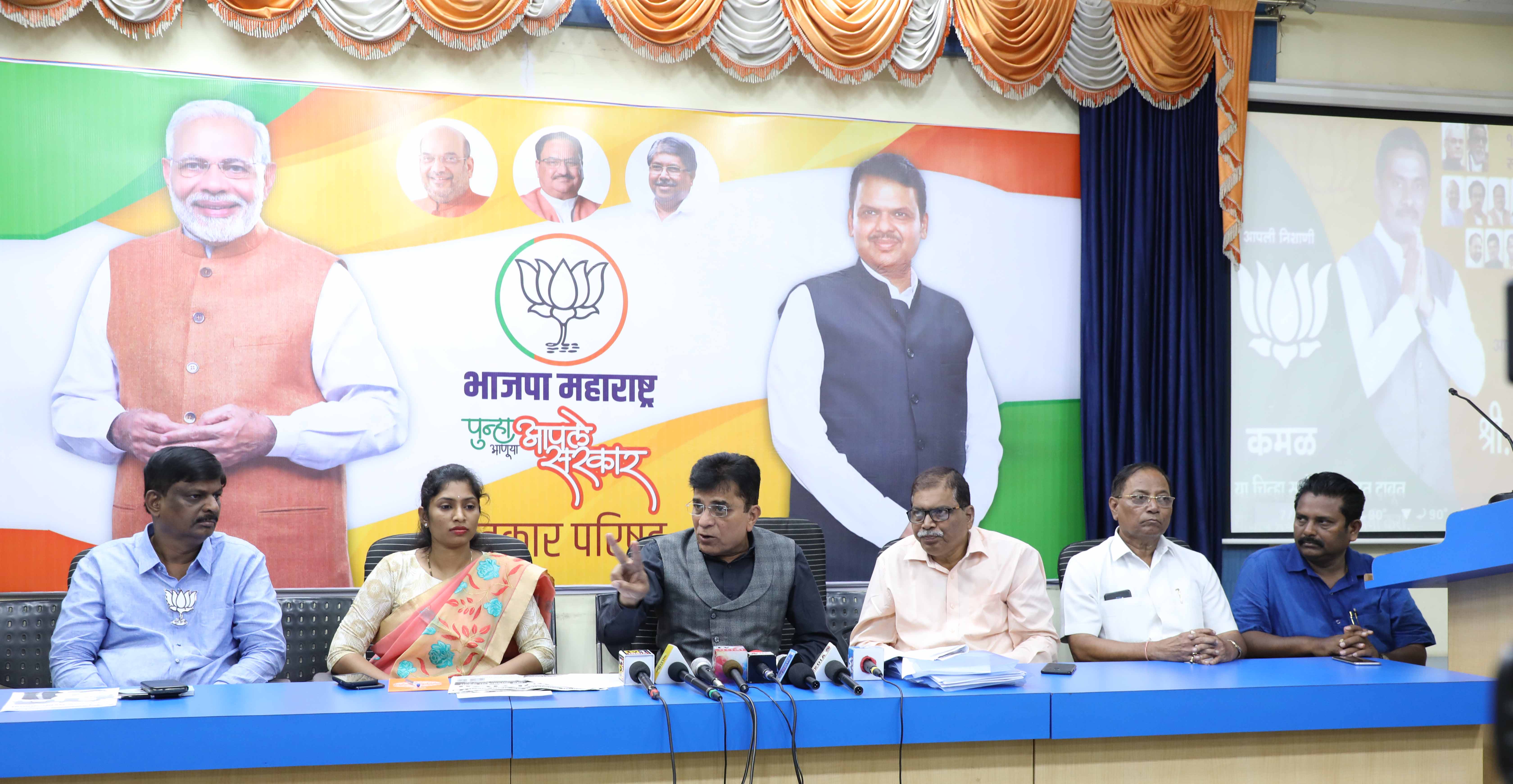 त्यांनी पत्रकारांशी संवाद साधताना सांगितले कि, बळीराजाला बळ देण्यासाठी छत्रपती शिवाजी महाराज शेतकरी सन्मान योजना, राज्यात ५०.२७ लाख शेतकऱ्यांची कर्जखाती मंजूर, २००९ ते २०१४ या काळात राज्यात प्रत्यक्ष सिंचन क्षमता ३२ लाख हेक्टर होती ती २०१४ ते २०१९ या पाच वर्षांत ४०. ५८ लाख हेक्टरपर्यंत वाढली, मागेल त्याला शेततळे, १ लाख ७९ विहिरी, प्रधानमंत्री पीक विमा योजना, जलयुक्त शिवार अभियान, मराठवाडा वॉटरग्रीड, राष्ट्रीय ग्रामीण पेयजल कार्यक्रम, ऊर्जावान महाराष्ट्रसाठी २०१४ पूर्वी दीर्घकाळ असलेली विजेच्या लोडशेडिंगची समस्या गेल्या पाच वर्षांत इतिहासजमा केली तसेच विक्रमी २५ हजार मेगावॅट वीजपुरवठा, शेतीपंपांना वीज जोडणी – शेतीसाठीच्या पंपांना वीज कनेक्शन देण्यात आघाडी, स्वच्छ आणि आरोग्यपूर्ण महाराष्ट्रसाठी पंतप्रधान नरेंद्र मोदी यांची प्रधानमंत्री आयुष्मान योजना आणि राज्यातील महात्मा फुले जनआरोग्य योजनेचा महाराष्ट्रातील ९० टक्के नागरिकांना लाभ व त्या अनुषंगाने आतापर्यंत २४ लाख ८५ हजार शस्त्रक्रिया व उपचार, मुख्यमंत्री वैद्यकीय सहायता कक्षाच्या माध्यमातून राज्यातील ४३० रुग्णालयांमध्ये २० लाख ८३ हजाराहून अधिक रुग्णांना मदत, स्वच्छ भारत मिशन (ग्रामीण) कार्यक्रम-ग्रामीण महाराष्ट्र हागणदारीमुक्त अंतर्गत पाच वर्षांत ६० लाख शौचालये बांधली, घरांची खरेदी करताना बिल्डरांकडून होणारी फसवणूक रोखण्यासाठी महारेराची निर्मिती व विकासकाला गृहनिर्माण प्रकल्पांची महारेराकडे नोंदणी बंधनकारक, पंतप्रधान नरेंद्र मोदी यांची प्रधानमंत्री आवास योजना अंतर्गत सर्वांसाठी घरे योजना, रस्त्यांचा विकास व्हावा आणि त्यांची देखभाल दुरुस्ती वेळेवर व्हावी यासाठी प्रथमच हायब्रिड योजना, गतिमान नागरी वाहतुकीसाठी रस्ते, मेट्रो, २०१३-१४ साली राज्याचे उत्पन्न १६. ५० लाख कोटी होते ते गेल्या पाच वर्षात १० लाख कोटींनी वाढून २६. ६० लाख कोटी झाले. २०१४-१५ साली कर्जाचे प्रमाण स्थूल राज्य उत्पन्नाच्या १६.५ टक्के होते ते गेल्या साडेचार वर्षांत १५. ६ टक्क्यांवर कमी आणण्यात यश व महसुली तूट नियंत्रणात आणण्यात सरकारला यश आल्याचे त्यांनी यावेळी सांगितले. त्यांनी पुढे सांगितले कि, परकीय गुंतवणूकदारांची महाराष्ट्राला पहिली पसंती मिळाली आहे. त्यानुसार देशातील एकूण परकीय गुंतवणुकीपैकी ३० टक्के महाराष्ट्रात झाली असून पाच वर्षांत ३ लाख ७५ हजार कोटींची गुंतवणूक झाली आहे. सर्वांना न्याय या अनुषंगाने मराठा समाजाला शिक्षण व सरकारी नोकऱ्यात आरक्षण लागू केले. ओबीसींसाठी स्वतंत्र मंत्रालय, इतर मागासवर्ग प्रवर्गातील बारा बलुतेदार घटकांना त्यांच्या पारंपरिक व्यवसायासाठी १०० कोटी र