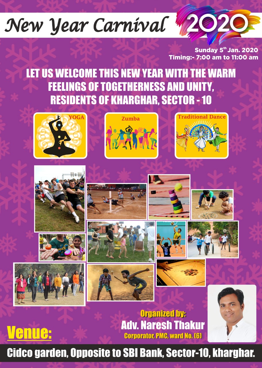 न्यू इयर कारनिवल मध्ये विविध कार्यक्रमांचे आयोजन करण्यात आले आहे. सांस्कृतिक आणि क्रीडा विषयक अनेक स्पर्धा होणार आहेत. योगा, झुंबा, ट्रॅडिशनल डान्सची भरपूर सांस्कृतिक मेजवानी मिळणार आहे. नवीन वर्षाचे स्वागत करताना मागचे वाईट ते विसरून जुन्या चांगल्या आठवणी सोबत घेऊन नवीन वर्षाचे स्वागत करण्यासाठी या कार्यक्रमाचे आयोजन केल्याची माहिती आयोजक नगरसेवक ऍड नरेश ठाकूर यांनी कोकण दर्पणशी बोलताना दिली.