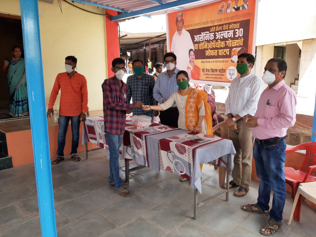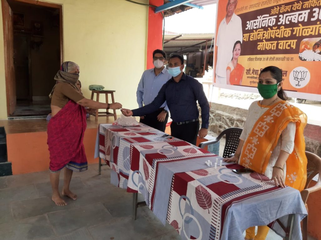 लोकनेते रामशेठ ठाकूर यांचा 2 जून रोजी वाढदिवस आहे. त्या निमित्ताने पनवेल महानगरपालिकेच्या प्रभाग क्र.४च्या नगरसेविका नेत्रा किरण पाटील यांच्या वतीने आयुष मंत्रालयाने सांगितलेल्या आर्सेनिक अल्बम 30 या होमिओपॅथीक रोगप्रतिकारक शक्ती वाढवण्यासाठी उपयुक्त असलेल्या गोळ्यांचे रविवारी ओवे कॅम्प येथील जवळपास 500 कुटुंबियांना सदर गोळ्यांचे व मास्कचे मोफत वाटप पनवेल महानगरपालिकेचे स्थायी समिती सभापती प्रवीण पाटील,खारघर तळोजा मंडळ भाजपा अध्यक्ष ब्रिजेशभाई पटेल, उपाध्यक्ष दिलीप जाधव ,किरण पाटील, भरत कोंढाळकर, ओवे कॅम्पचे भाजपा युवा मोर्चाचे सरचिटणीस रामचंद्र जाधव, ओवे कॅम्प बूथ अध्यक्ष संतोष रेवने,सुनील साळुंखे, संतोष भातोसे,दिपक साळुंखे यांच्या उपस्थितीत व होमिओपॅथीक तज्ञ डॉ .मयुरेश इंगळे यांच्या मार्गदर्शनाखाली करण्यात आले. सदर प्रसंगी प्रस्तावना करतांना किरण पाटील यांनी सांगितले की लोकनेते रामशेठ ठाकूर ह्यांच्या वाढदिवसाच्या निमित्ताने दरवर्षी सर्व भाजपाचे लोकप्रतिनिधी , पदाधिकारी तसेच कार्यकर्ते हे सदर वाढदिवस हा रामशेठ ठाकूर यांच्या शिकवणी नुसार सामाजिक, शैक्षणिक, आरोग्य विषयक, सांस्कृतिक कार्यक्रम करून साजरा करत असतात* . यावर्षी देशावर आलेले कोरोना संसर्गजन्य आजराचे सावट लक्षात घेता समाजातील लोकांना त्यांच्या आरोग्याच्या व सुरक्षिततेच्या दृष्टीने महत्ताचे असे होमिओपॅथीक गोळ्यांचे व मास्कचे वाटप करत साजरा करण्यात आला. नगरसेविका नेत्रा किरण पाटील यांनी लोकनेते रामशेठ ठाकूर यांचा वाढदिवस हा नेहमी लोकहिताचे कार्यक्रम करून साजरा करत असतो त्यांनी रामशेठ ठाकूर यांना वाढदिवसाच्या शुभेच्छा देखील दिल्या. डॉ मयुरेश इंगळे यांनी उपस्थित सर्व ग्रामस्थांना आर्सेनिक अल्बम 30 या गोळ्यांच्या बद्दल माहिती दिली व सदर काळात त्या कश्या आवश्यक आहेत तसेच त्यांचे सेवन कसे करावे व काय नियंमांचे पालन करावे याबद्दल सविस्तर माहिती दिली.
