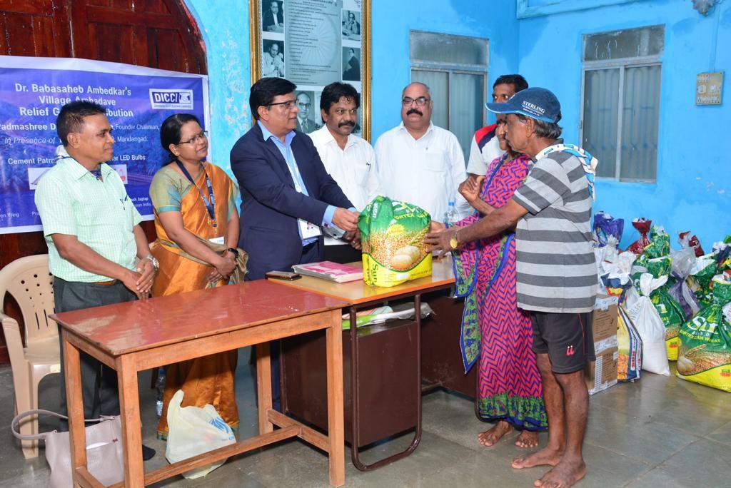 आंबडवे गावाला भेट देते वेळी,गावातील घरांचे नुकसान झाल्यामुळे डिक्की संस्थेने सर्व घरासाठी ३४,६६८ चौरस फूट सिमेंट पत्रे ,तर प्रत्येक घरासाठी ४३३ चौरस फूट पत्रे आणि इतर साहित्य ग्रामस्थांना देण्यात आले. तसेच प्रत्येक घराला जीवनावश्यक वस्तूंचे किट देण्यात आले तसेच बऱ्याच दिवसांपासून या भागात वीज नसल्यामुळे प्रत्येक कुटुंबासाठी सोलर एल इ डी दिवेही देण्यात आले.