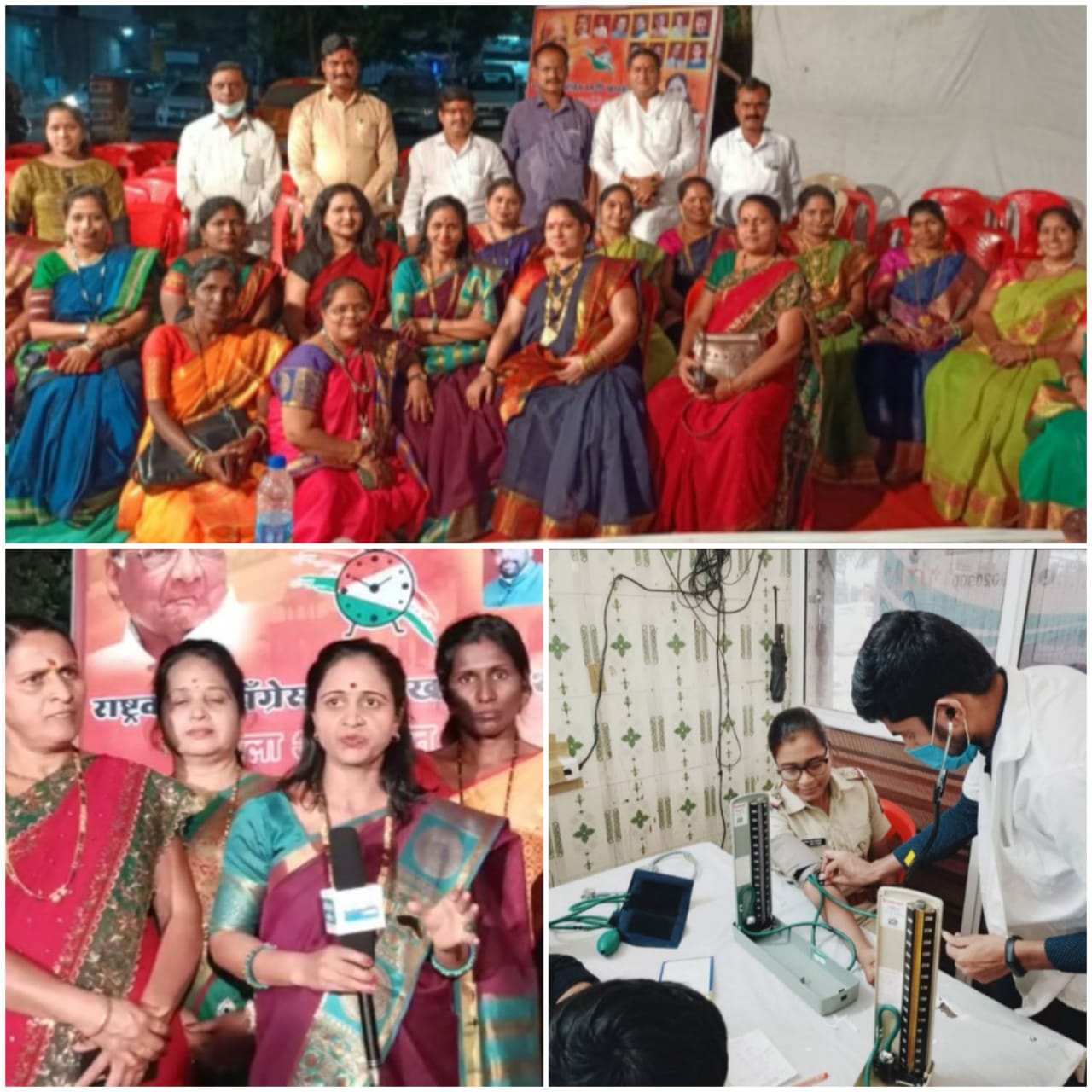 राष्ट्रवादी महिला काँग्रेस व डॉक्टर सेल यांच्या संयुक्त विद्यमाने “वाण आरोग्याचं”हा कार्यक्रम राज्यभर राबविण्यात येत आहे. खारघर राष्ट्रवादी महिला काॅग्रेसच्या वतीने खारघर येथे गुरुवारी सदर कार्यक्रम संपन्न झाला. वाण आरोग्याचे या सर्व कार्यक्रमांतर्गत महिलांचे फ्री मेडिकल चेकअप करण्यात आले यावेळी राष्ट्रवादी पनवेल जिल्हाउपाध्यक्षप प्रा बी ए पाटील, सरचिटणीस रामदास नारकर, विजय मयेकर ओबीसी सेल जिल्हा अध्यक्ष, शहर अध्यक्ष बळीराम नेटके, राष्ट्रवादीचे नेते सुरेश रांजवन, उद्योजक संतोष शेट्टी, खारघर शहर उपाध्यक्ष योगेश निपाणे, नरेश पाटील, संभाजी मोहीते , खारघर गुरुद्वारा कमिटीचे अध्यक्ष जसबिंदर सिंग आदी मान्यवर उपस्थित होते. डाॅक्टर सेलचे डाॅ पंकज पाटील, डाॅ अचुत हडोले, डाॅ विरसिंह कदम, डाॅ सचिन व त्यांच्या टीमने आरोग्य शिबीर यशस्वी केले.