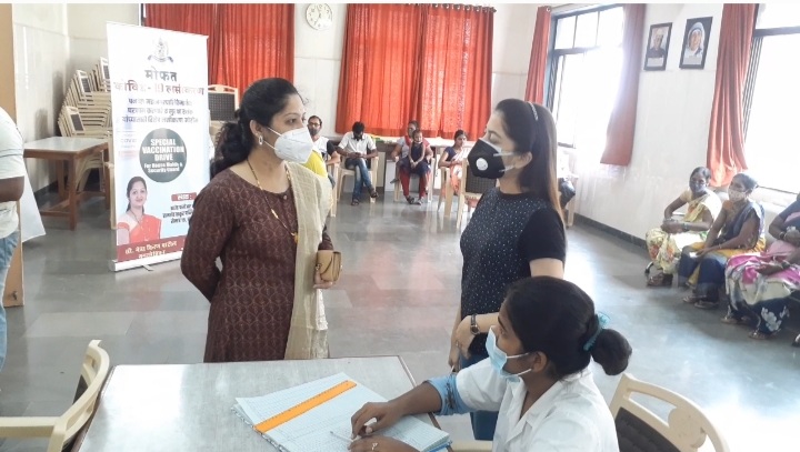पनवेल मनपा खारघर प्रभाग क्रमांक ४, रामशेठ ठाकूर शाळा सेक्टर १९ येथे आयोजित केलेल्या विशेष कोविड लसीकरण शिबिरात घरकाम करणाऱ्या महिला व सुरक्षा रक्षकांना कोविडची लस देण्यात आली. यावेळी सामाजिकनेते किरण पाटील, भाजप खारघर अध्यक्ष ब्रिजेश पटेल, उपाध्यक्ष दिलीप जाधव, डॉ वर्तिका कोटनाला, डॉ रोमा म्हसकर आदी उपस्थित होते.