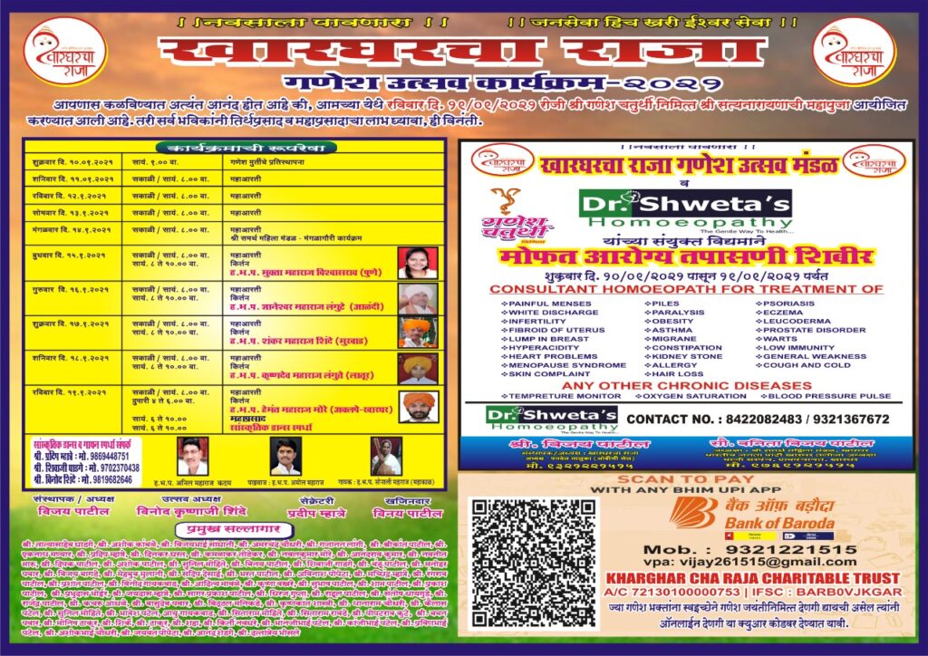 पनवेल : सालाबादप्रमाणे यंदा देखील खारघरचा राजा गणेश उत्सव मंडळाच्या वतीने खारघर येथे गणेशोत्सव संपन्न होत आहे. गणेशोत्सवानिमित्ताने विविध सामाजिक उपक्रमांचे आयोजन करण्यात आले आहे. कोरोनाचा काळ असल्याने नियमांचे काटेकोरपणे पालन करून फक्त जनसेवा कण्याचा आमचा मानस आहे, अशी प्रतिक्रिया खारघरचा राजाचे संस्थापक – अध्यक्ष विजय पाटील यांनी कोकण दर्पणशी बोलताना व्यक्त केली.