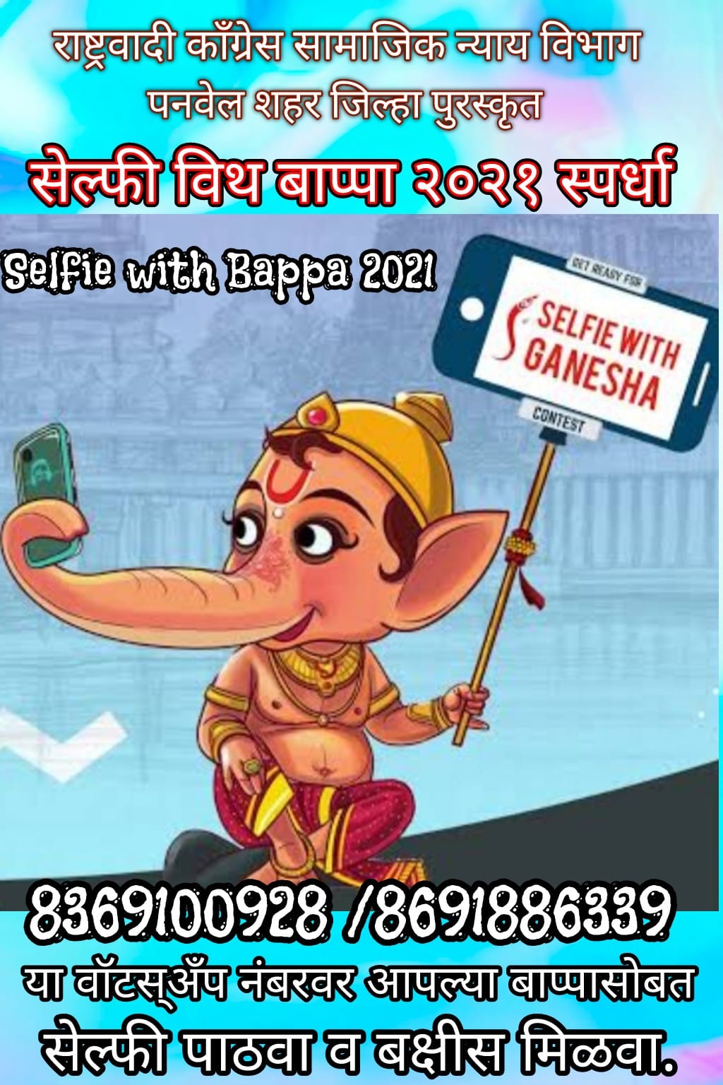 राष्ट्रवादी काँग्रेस सामाजिक न्याय विभाग पनवेल पुरस्कृत ‘सेल्फी विथ बाप्पा २०२१ स्पर्धा ‘ !