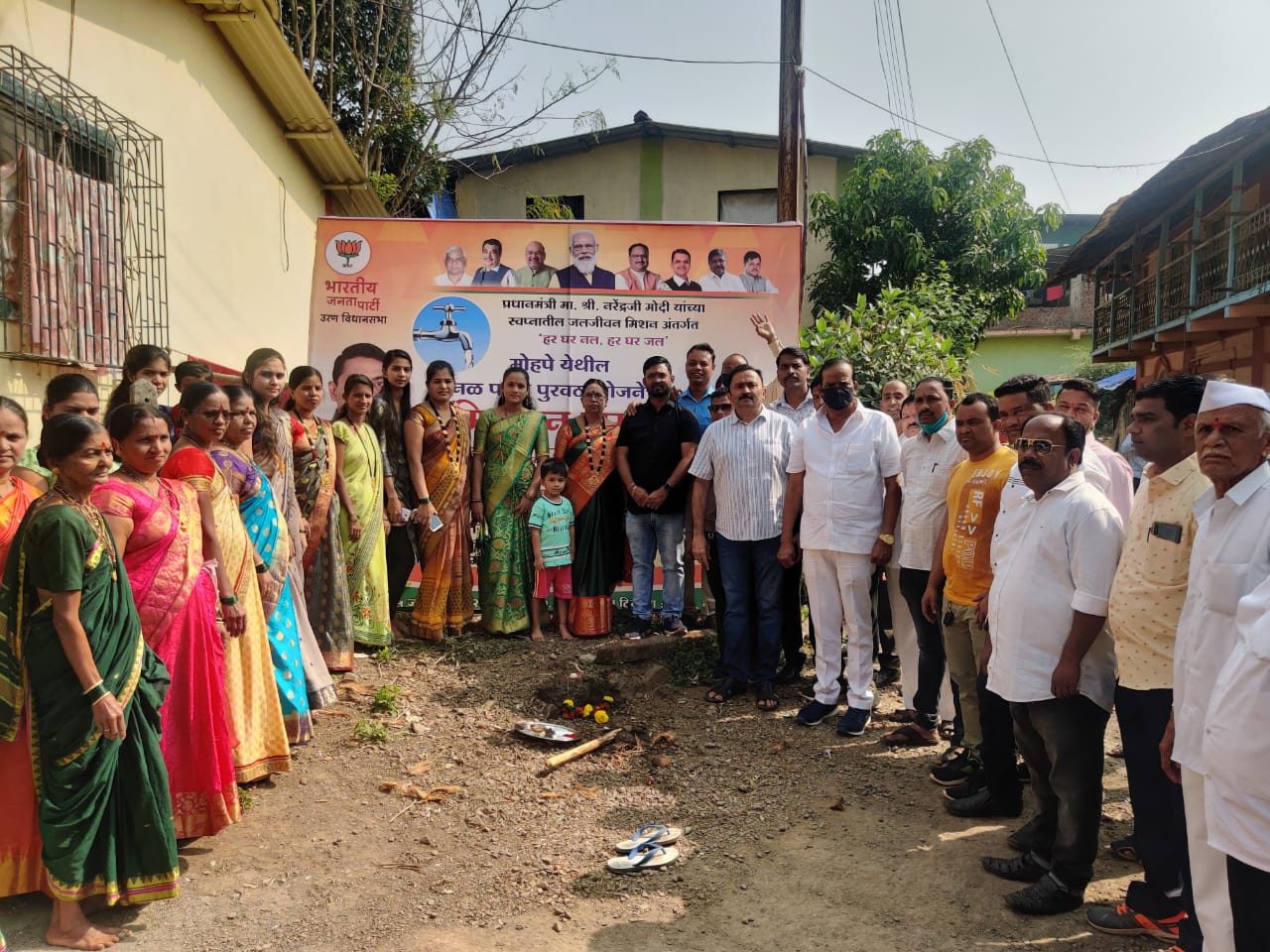 ग्रामीण भागात पिण्याच्या पाण्याने समृद्ध करण्यासाठी जलजीवन मिशन केंद्र सरकारची एक महत्वपूर्ण योजना आहे. वाढत्या लोकसंख्येसोबत जलसंकटही वाढत असून ही समस्या लक्षात घेऊन पंतप्रधान नरेंद्र मोदी यांनी सन २०१९ मध्ये स्वातंत्र्यदिनाच्या मुहूर्तावर एक भव्य योजना सुरू केली. त्या अनुषंगाने आमदार महेश बालदी यांनी शासनाकडे सातत्याने पाठपुरावा करून तब्बल ५० लाख रुपयांचा निधी मोहपे येथील नळपाणी पुरवठा योजनेसाठी आणला. या योजनेच्या कामाच्या भूमिपूजन समारंभ आज आमदार महेश बालदी, भाजपचे तालुकाध्यक्ष अरुणशेठ भगत यांच्या हस्ते करण्यात आला. यावेळी गुळसुंदे जिल्हा परिषद विभागीय अध्यक्ष डॉ. अविनाश गाताडे, राकेश गायकवाड, आत्माराम हातमोडे, माजी सरपंच आशा म्हसकर, युवानेते प्रविण ठाकूर, योगेश लहाने, अनिल पाटील, राजेश लबडे, तानाजी पाटील, महेंद्र गोजे, अनिल भोईर, अशोक भोईर, सचिन पाटील, वामन पवार, संकर पवार, नामदेव पवार, आदेश पवार, सुनील दळवी,प्रकाश म्हसकर, उमेश पवार, चेतन पाटील, जगन पाटील, राकेश ठाकूर, संभाजी पाटील, हरी पवार, सखाराम पवार, दत्ता पवार, मंदार चोरघे, विनायक पवार, प्रतीक पवार, निखिल पवार, किसन पवार, विवेक पवार, शरद पवार, पांडुरंग पवार, यांच्यासह पदाधिकारी, कार्यकर्ते, ग्रामस्थ मोठ्या संख्येने उपस्थित होते.