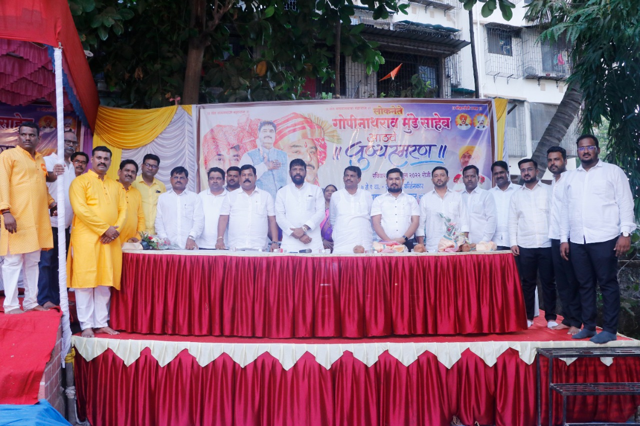 पनवेल : राष्ट्रवादी काँग्रेस पार्टी तसेच जय गोपीनाथ प्रतिष्ठान कामोठे यांच्या संयुक्त विधमाने वंचितांचे वाली, शोषितांची वाणी लोकनेते स्व. गोपीनाथराव मुंडे साहेब यांचे आठवे पुण्यस्मरण निमित्त श्री. संत शिरोमणी तुकाराम महाराज मंदिर, सेक्टर-३६, प्लॉट नं.४४, कामोठे याठिकाणी करण्यात आले होते. यावेळी स्व. गोपीनाथराव मुंडे साहेब यांच्या पावन स्मृतीस अभिवादन करण्या हेतुपुरस्सर विविध कार्यक्रमांचे आयोजन करून मुख्यतः आचार्य श्री.ह.भ.प प्रल्हाद महाराज शास्त्री, मलंगगड यांचे हरीपाठ तसेच सुप्रसिद्ध कीर्तनकार श्री.ह.भ.प डॉ. सुदाम महाराज पानेगावकर यांचे कीर्तन कार्यक्रम पार पडले. या कार्यक्रमात स्व. गोपीनाथराव मुंडे साहेबांना मानणार तसेच त्याच्यांवर प्रेम करणारा सर्व समाजातील जनभव सागर मोठ्या संख्येने त्यांना अभिवादन करण्यासाठी जमला होता.