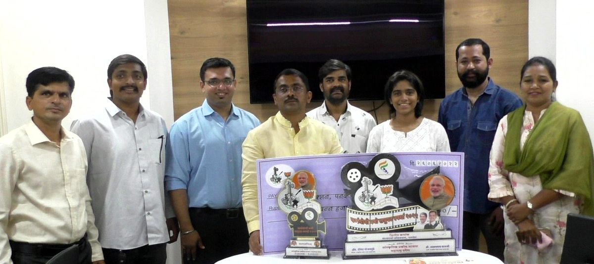 पनवेल(प्रतिनिधी) भाजप सांस्कृतिक प्रकोष्ठच्या वतीने आयोजित कर्मयोगी नमो लघुपट स्पर्धेचा पारितोषिक वितरण समारंभ रविवारी कोथरुडमधील यशवंतराव चव्हाण नाट्यगृहात झाला. या स्पर्धेत पनवेल तालुक्यातील तीन संस्थांच्या लघुपटांना पारितोषिक मिळाले आहे. या विजेत्यांचे माजी खासदार लोकनेते रामशेठ ठाकूर, भाजपचे उत्तर रायगड जिल्हाध्यक्ष आमदार प्रशांत ठाकूर आणि सभागृहनेते परेश ठाकूर यांनी अभिनंदन केले व त्यांच्या पुढील वाटचाली करीता शुभेच्छा दिल्या. स्वातंत्र्याच्या अमृतमहोत्सवी वर्षानिमित्त भाजप सांस्कृतिक प्रकोष्ठ महाराष्ट्र प्रदेशच्यावतीने पंतप्रधान नरेंद्र मोदी यांच्या कारकीर्दीवर कर्मयोगी नमो लघुपट स्पर्धेचे आयोजन करण्यात आले होते. या स्पर्धेला उत्स्फूर्त प्रतिसाद मिळाला. देशभरातून एकूण १३५ स्पर्धेकांनी स्पर्धेत सहभाग घेत, एक ते १२ मिनिटांचे लघुपट सादर केले होते. यापैकी काही निवडक लघुपट पंतप्रधान नरेंद्र मोदी यांनी स्वतः पाहून विशेष पसंती दर्शविली होती. या स्पर्धेत पनवेलमधील सत्यधर्म प्रोडक्शनच्या सेल्फी पॉइंट या लघुपटाला द्वितीय क्रमांक (५१ हजार रुपये व स्मृतिचिन्ह), अनन्या एजन्सीच्या सक्षम या लघुपटाला उत्तेजनार्थ क्रमांक (पाच हजार रुपये व स्मृतिचिन्ह) तसेच स्वर्णीम संस्थेच्या स्वच्छ सर्वेक्षण भारत या लघुपटाला उत्तेजनार्थ क्रमांक (पाच हजार रुपये व स्मृतिचिन्ह) प्राप्त झाले. या सर्व विजेत्यांनी माजी खासदार लोकनेते रामशेठ ठाकूर, भाजपचे उत्तर रायगड जिल्हाध्यक्ष आमदार प्रशांत ठाकूर आणि पनवेल महापालिकेचे सभागृहनेते परेश ठाकूर यांची सदिच्छा भेट घेतली. यावेळी त्यांनी पारितोषिक प्राप्त संस्थांचे अभिनंदन केले. या वेळी कोकण विभाग संयोजक राहुल वैद्य, सहसंयोजक दिपक पवार, अक्षया चितळे, प्रदेश सदस्य सुनिल सिन्हा, भाजप उत्तर रायगड जिल्हाध्यक्ष अभिषेक पटवर्धन, जिल्हा सहसंयोजक गणेश जगताप, पनवेल शहर संयोजक निखिल गोरे यांच्यासह पदाधिकारी उपस्थित होते.