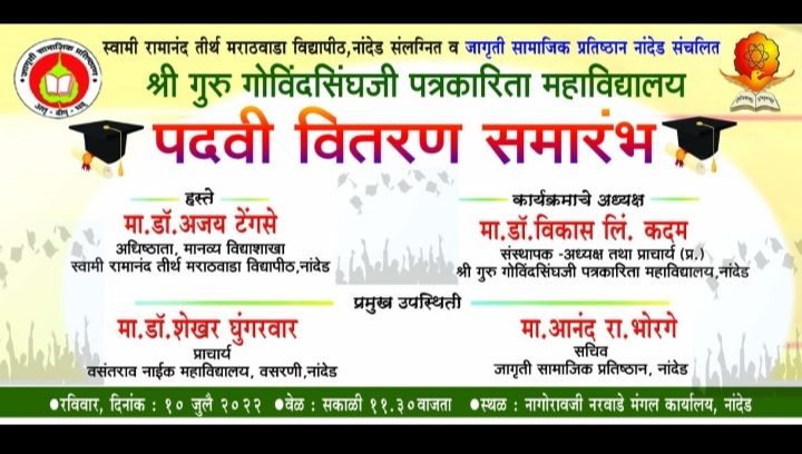 श्री गुरुगोविंद सिंघजी पत्रकारिता महाविद्यालयाचा १० जुलै रोजी पदवी वितरण समारंभ !