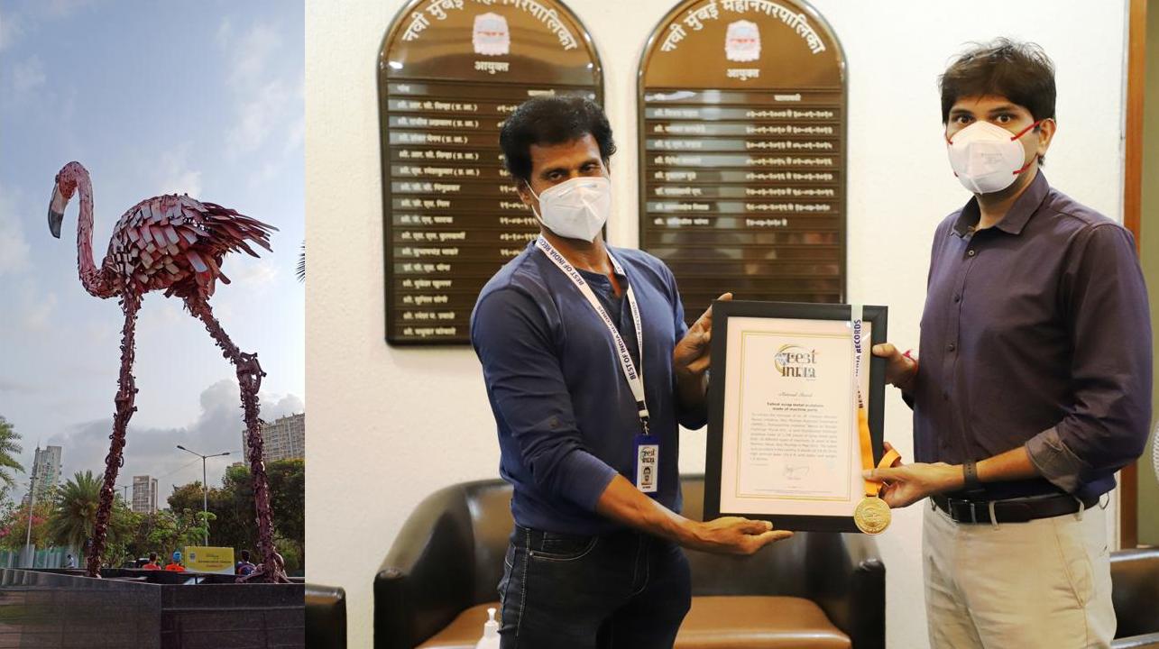 नवी मुंबईचे आकर्षण केंद्र म्हणून ओळखल्या जाणा-या पामबीच मार्गानजीकच्या सेक्टर 26 नेरुळ येथील ज्वेल ऑफ नवी मुंबई या ठिकाणी टाकाऊपासून टिकाऊ या संकल्पनेतून 28.5 फूट इतक्या उंचीची भव्यतम फ्लेमिंगो शिल्पाकृती साकारण्यात आलेली आहे. या अत्यंत भव्य स्वरुपात साकार झालेल्या शिल्पाकृतीची विशेष नोंद ‘बेस्ट ऑफ इंडिया रेकॉर्ड्स’ या विविध क्षेत्रातील विक्रम नोंदविणा-या मान्यताप्राप्त संस्थेमार्फत घेण्यात आली असून नवी मुंबई महानगरपालिकेस याबाबतचे राष्ट्रीय विक्रमी प्रमाणपत्र प्रदान करण्यात आले आहे.