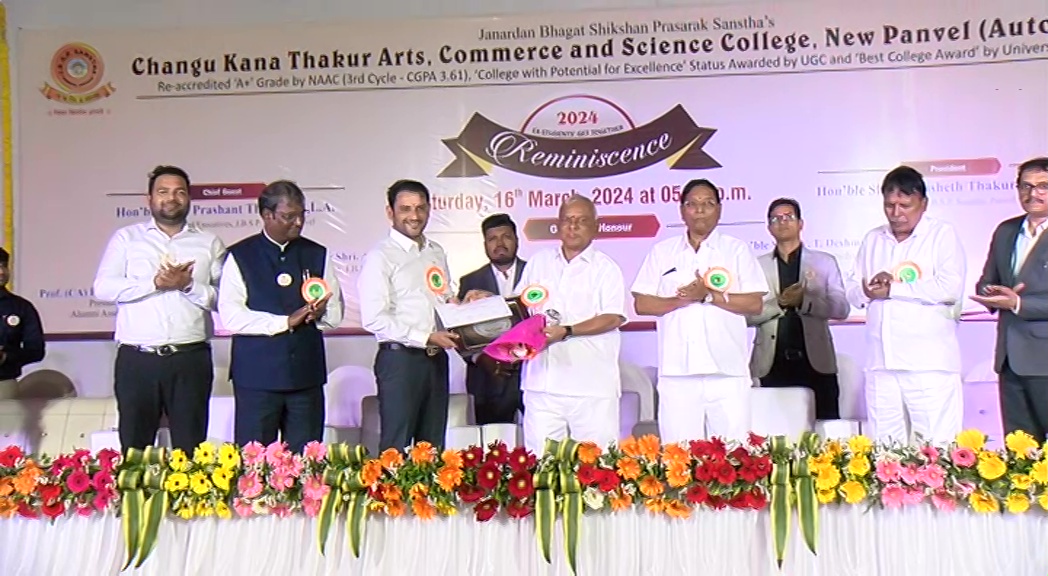 पनवेल (प्रतिनिधी) चांगू काना ठाकूर महाविद्यालय अर्थांत सीकेटी कॉलेजने विद्यार्थ्यांना शैक्षणिक तसेच इतर अनेक सुविधा उपलब्ध करून दिल्या तसेच विद्यार्थ्यांचा सर्वांगिण विकास करून एक सक्षम व्यक्तिमत्व बनविले, असे गौरवोद्गार जनार्दन भगत शिक्षण प्रसारक संस्थेचे चेअरमन माजी खासदार लोकनेते रामशेठ ठाकूर यांनी माजी विद्यार्थी मेळाव्यावेळी केले. जनार्दन भगत शिक्षण प्रसारक संस्थेच्या चांगू काना ठाकूर महाविद्यालयात(स्वायत्त) माजी विद्यार्थी मेळाव्याचे आयोजन शनिवारी संस्थेचे चेअरमन लोकनेते रामशेठ ठाकूर यांच्या प्रमुख उपस्थितीत संपन्न झाला. हा सोहळा संस्थेचे सचिव डॉक्टर एस. टी. गडदे यांच्या अध्यक्षतेखाली संपन्न झाला असून यावेळी जनार्दन भगत शिक्षण प्रसारक संस्थेचे व्हाईस चेअरमन वाय.टी. देशमुख, प्राचार्य एस. के. पाटील, महाविद्यालयाच्या माजी विद्यार्थी संघाचे अध्यक्ष प्रदीप कामतेकर, उपाध्यक्ष वैभव देशमुख, मयुरेश नेतकर, माजी विद्यार्थी संघाचे सचिव डॉ. भूषण लांगी, सहसचिव राहुल पाबरी, माजी विद्यार्थी संघाचे खजिनदार सौरभ भगत, यांच्यासह विद्याशाखांचे प्रमुख आणि विविध विभागांचे प्रमुख उपस्थित होते.