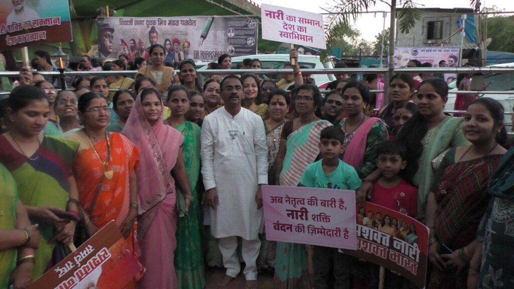या प्रसंगी आमदार प्रशांत ठाकूर यांनी आपल्या मनोगतातून या अधिनियमाचे महत्त्व अधोरेखित केले. लोकसभा व राज्य विधानसभांमध्ये महिलांना ३३ टक्के आरक्षण देणारा हा कायदा महिला सक्षमीकरणाच्या दृष्टीने एक क्रांतिकारी पाऊल असल्याचे त्यांनी नमूद केले. या निर्णयामुळे धोरणनिर्मितीत महिलांचा सहभाग वाढून देशाच्या सर्वांगीण विकासाला नवी दिशा मिळेल, असा विश्वास त्यांनी व्यक्त केला. ‘नारीशक्ती वंदन अधिनियम’ हा केवळ आरक्षणाचा कायदा नसून महिलांच्या सन्मानाचे आणि समान हक्कांचे प्रतीक आहे. या माध्यमातून सामान्य कुटुंबातील कर्तृत्ववान महिलांना राजकारणात येण्याची संधी उपलब्ध होणार असून, देशाच्या प्रगतीत महिलांचा सहभाग अधिक बळकट होणार आहे. पदयात्रेत मोठ्या संख्येने सहभागी झालेल्या महिलांचे व नागरिकांचे त्यांनी आभारही मानले तसेच हे विधेयक मान्य होईपर्यत आणि त्यानंतरही पाठिंबा कायम रहावा, तसेच नारी शक्ती वंदन अधिनियमला पाठींबा देण्यासाठी ९६६७१७३३३३ या नंबरवर मिस्ड कॉल द्यावा, असे आवाहनही त्यांनी केले.
