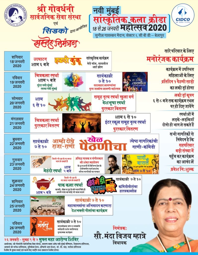 नवी मुंबई ,कोकण दर्पण वृत्तसेवा : श्री गोवर्धनी सार्वजनिक सेवा संस्थेच्या वतीने आणि सिडकोच्या सहकार्याने सीबीडी – बेलापूर येथे नवी मुंबई कला – क्रीडा महोत्सवाचे…