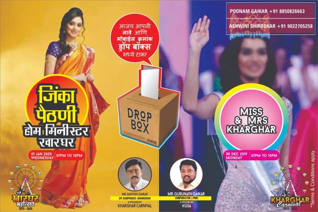 खारघर , कोकण दर्पण वृत्तसेवा : खारघर महोत्सवामध्ये होम मिनिस्टर खारघर तसेच मिस आणि मिसेस खारघर या स्पर्धेचे विशेष आकर्षण आहे. १ जानेवारी रोजी संध्याकाळी…