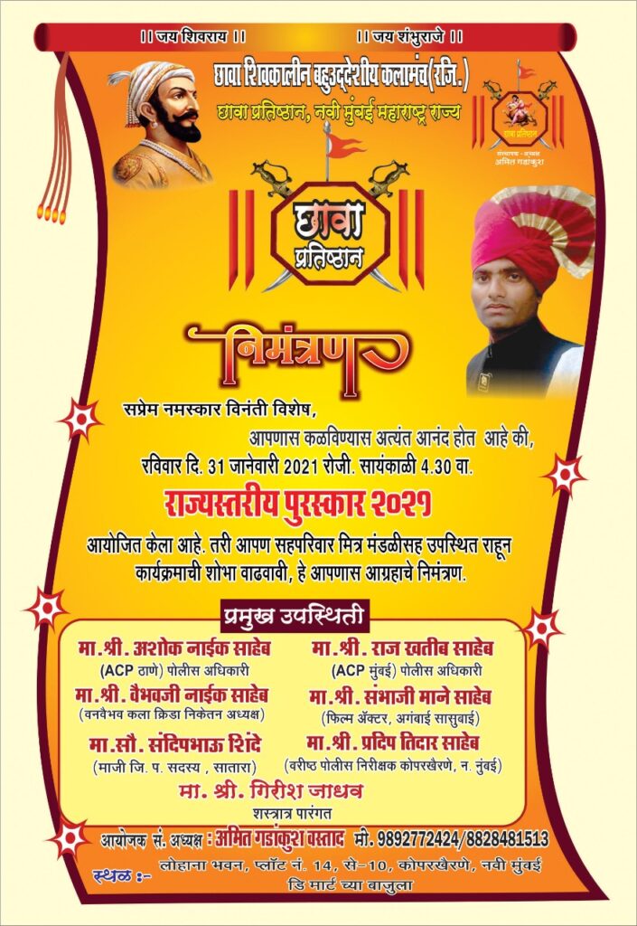 नवी मुंबई, कोकण दर्पण वृत्तसेवा : छावा प्रतिष्ठाण प्रणित छावा शिवकालीन बहुउद्देशीय कलामंचच्या वतीने नवी मुंबई येथे भव्य अशा राज्यस्तरीय पुरस्कार २०२१ सोहळ्याचे आयोजन करण्यात…